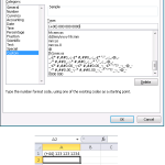 Want to format a phone number? Use Ctrl+1 to bring up the Format Cells dialog box. In the Type: text box enter (+00) 000 000 0000 for 2 digit country codes.